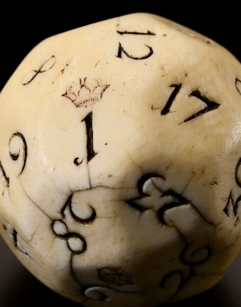 Dobbelsteen met 32 vlakken en 2 gegraveerde kroontjes