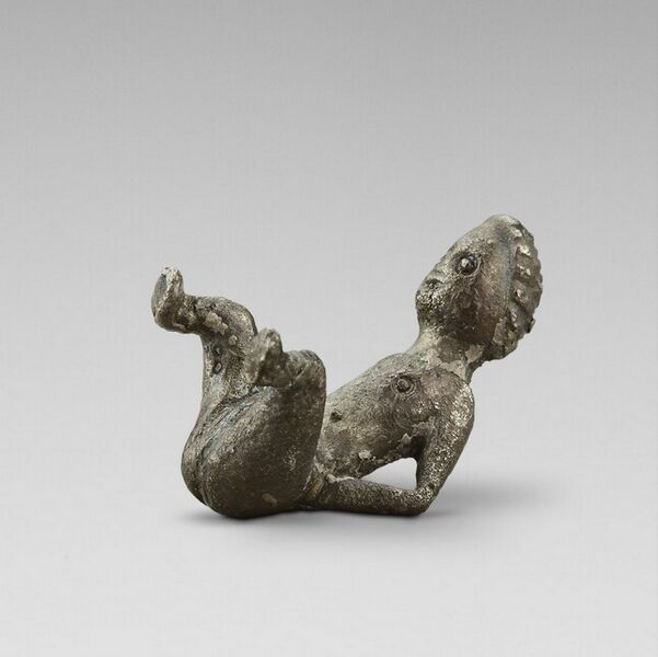 Dit is een Romeinse dobbelsteen in de vorm van een naakte vrouw. Naargelang het figuurtje bij het werpen valt (op de zijkant, op de rug , ...), levert het punten op van 1 tot 6. Daartoe werden kleine gaatjes op de lichaamsdelen aangebracht, hier nog nauwelijks zichtbaar. Het kostbare materiaal wijst op een welstellende bezitter aan wie de dobbelsteen geluk moest brengen.