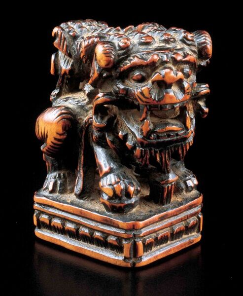 Chiu tzu-amulet (geluksbrenger), met afbeelding van twee Foo-honden
