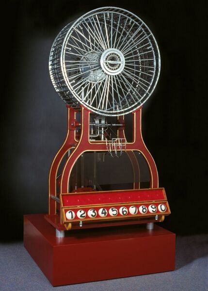 Dit is de eerste trommel die gebruikt werd voor de trekkingen van de Koloniale Loterij.