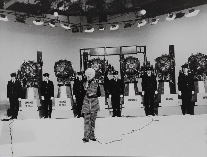 Sylvie (artiestennaam voor Marie Vande Caleye) presenteert een trekking in studio 6 van de RTBF.