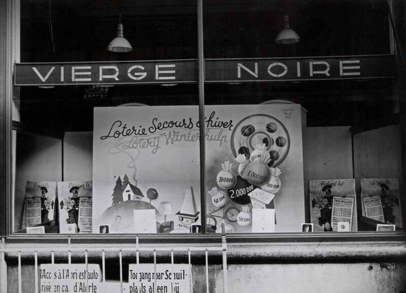 Hier zien we een uitstalruim in Brussel met publiciteit voor de Loterij Winterhulp.