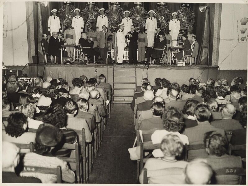 Dhr. Gihoul, burgemeester van Herve, trekt het groot lot van 2.500.000 BEF.